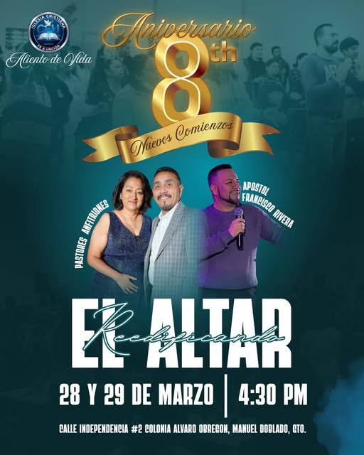 #Internacional#Nacional#Especial#seguidores Iglesia cristiana de FE Y UNCION ALIENTO DE VIDA cumple 8 años de ser fundada en la ciudad de...
