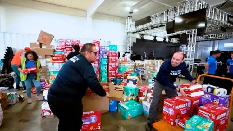 En Home Depot, los equipos preparan kits de ayuda adicionales para desastres.